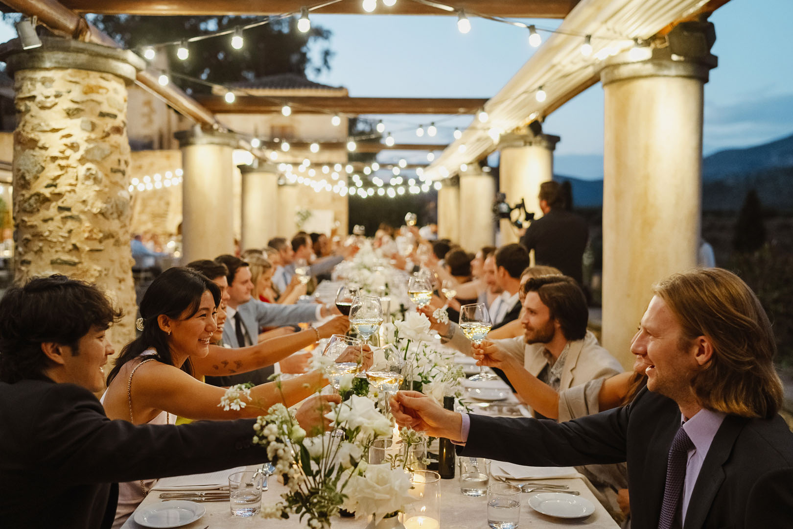 The weekend began in Athens with a welcome cocktail party overlooking the Acropolis, setting a relaxed and joyful tone. The following morning brought guests together once more for brunch, before the group made its way to Monemvasia, where the celebration would continue.