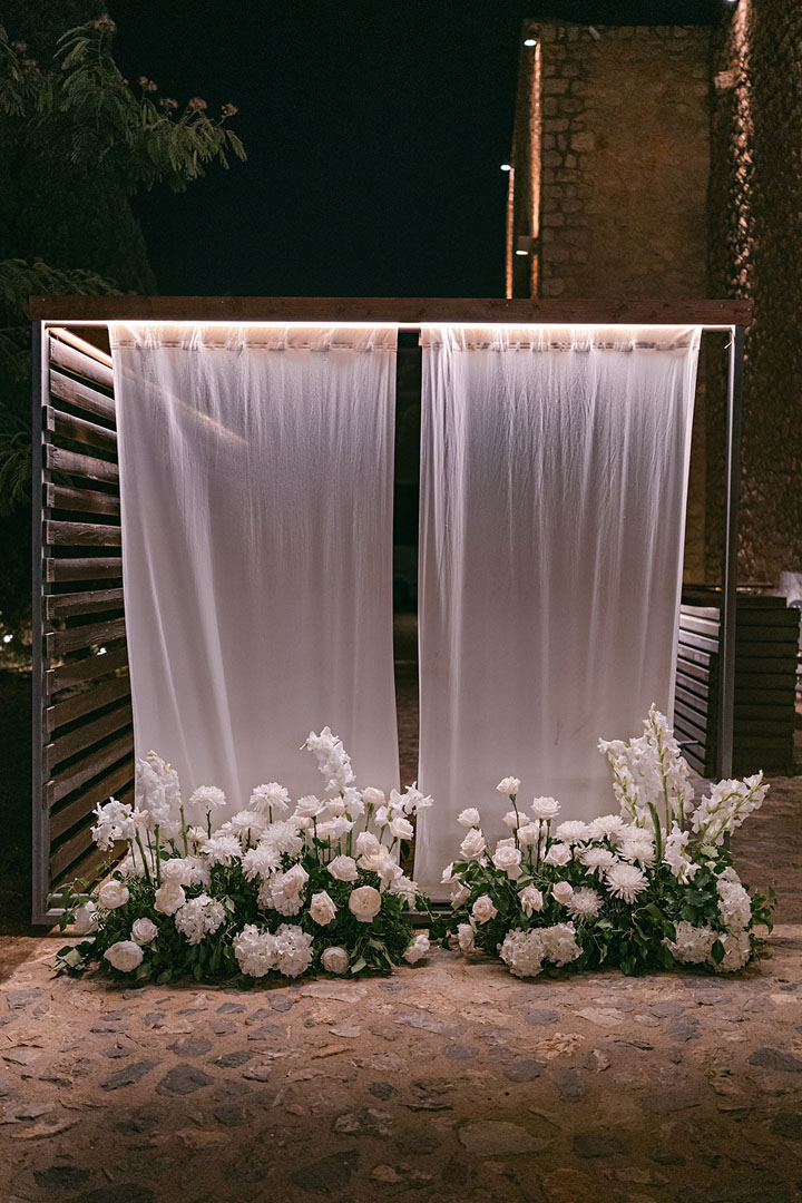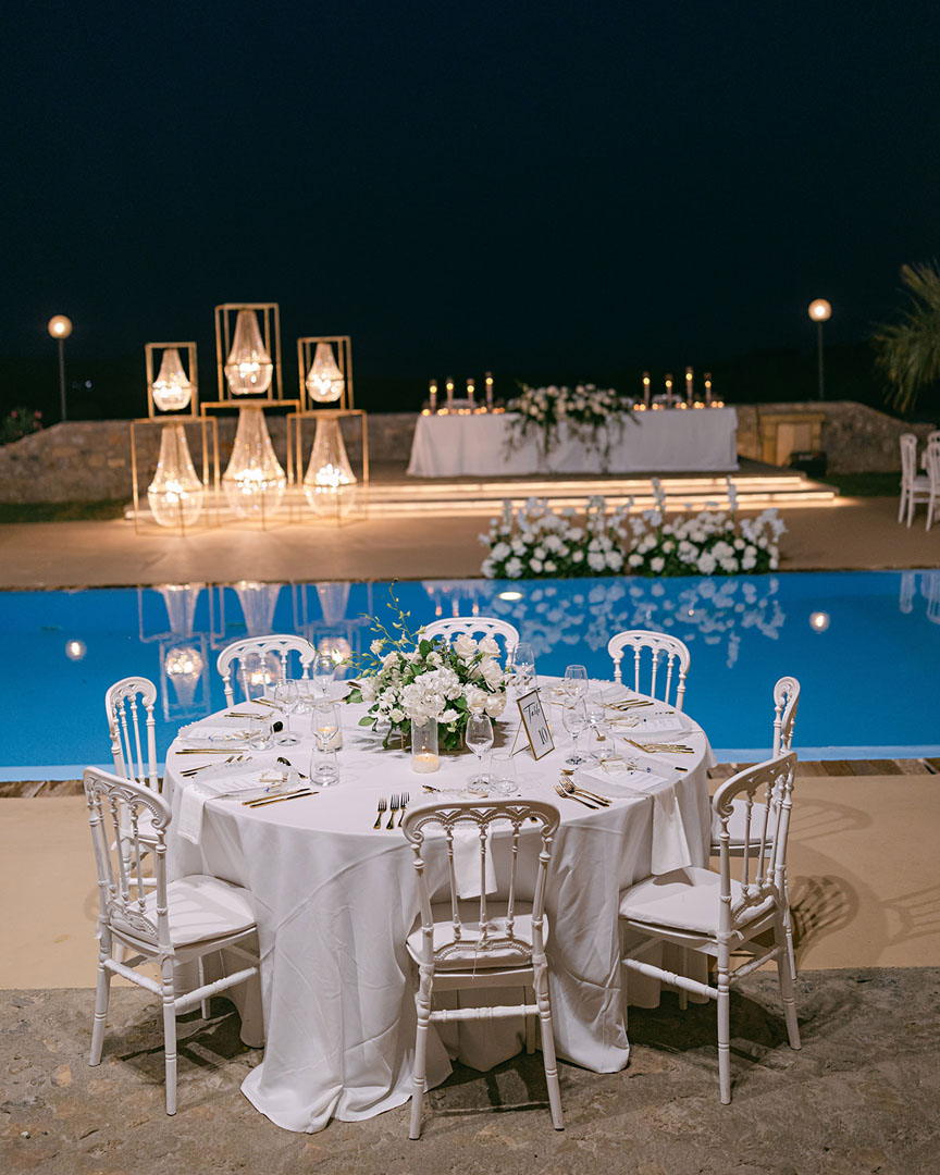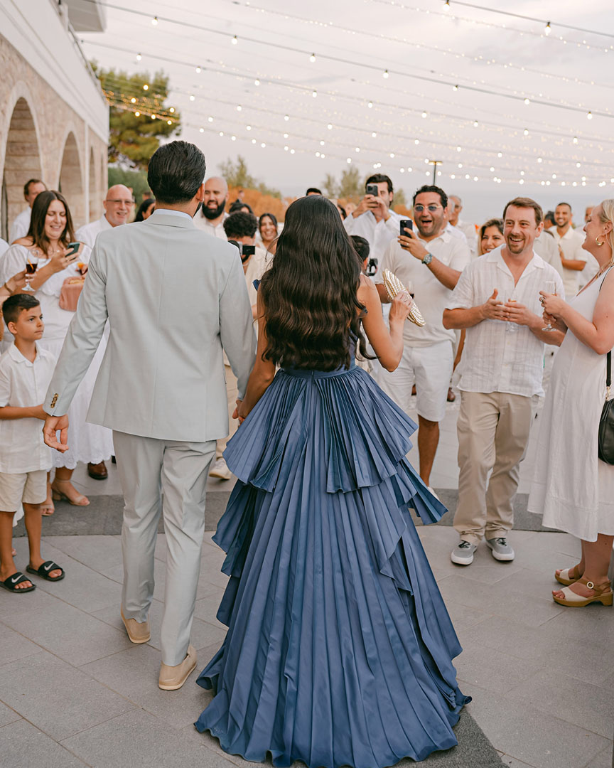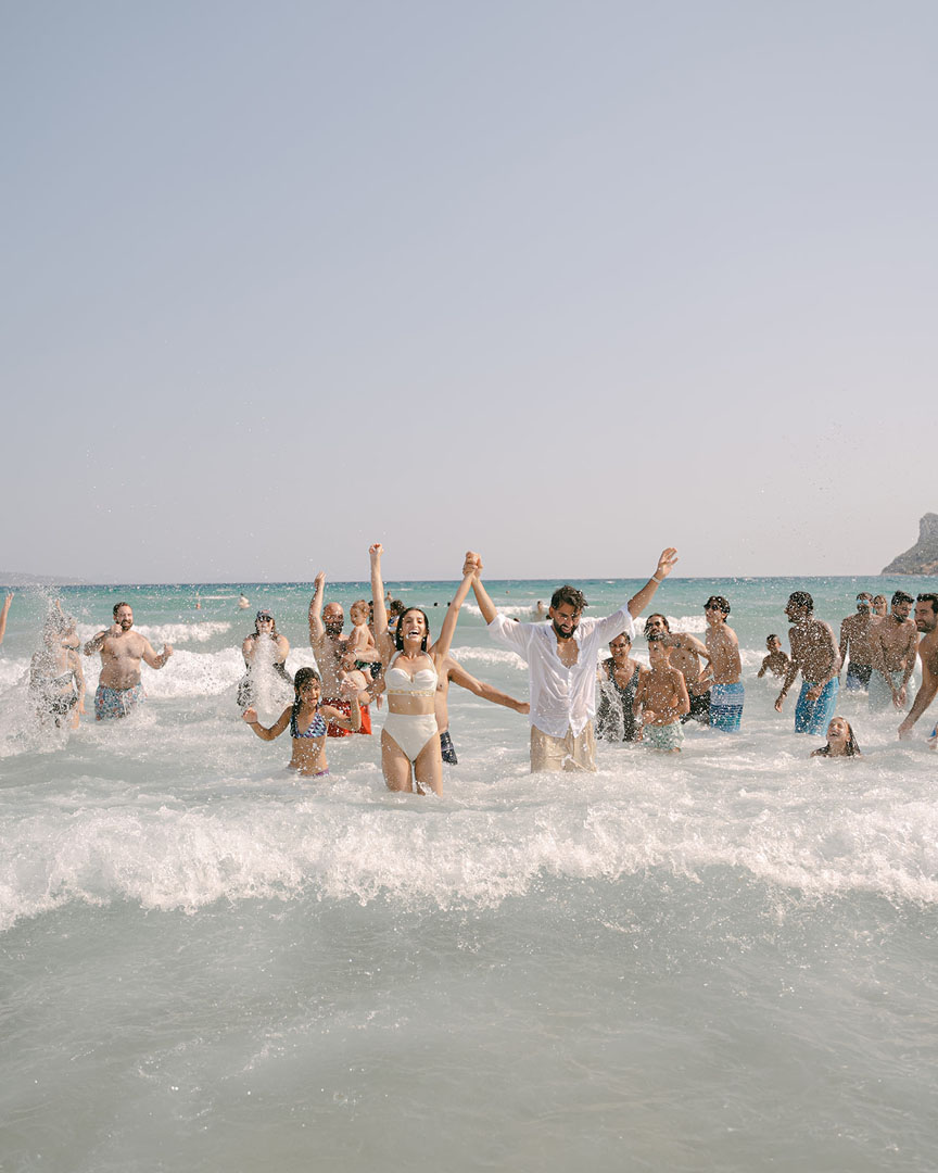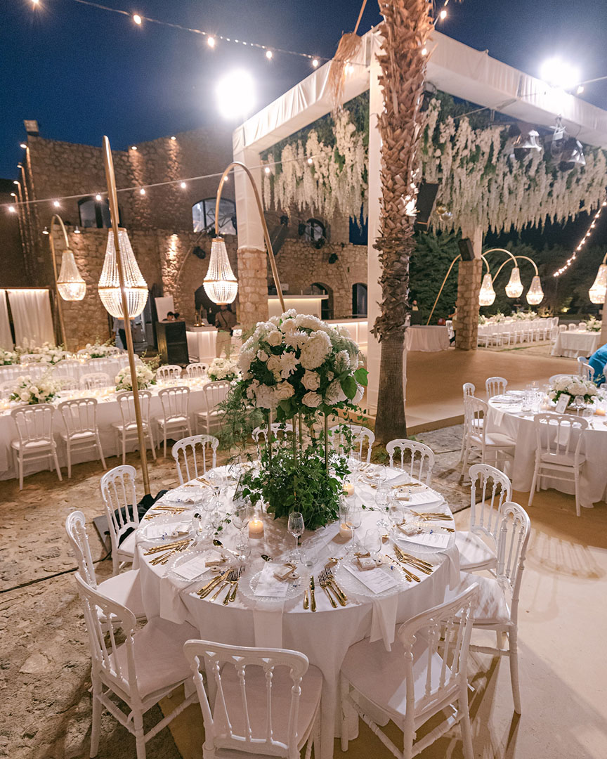 The journey began with a welcoming dinner, intimate and relaxed, setting the tone for the days ahead. The second day embraced the sun and sea, with a beach gathering of cocktails and finger food, followed by an elegant white party under the stars. On the third day, the symbolic ceremony brought everyone together in a moment of intimacy and joy, before the reception carried the celebration well into the early hours.