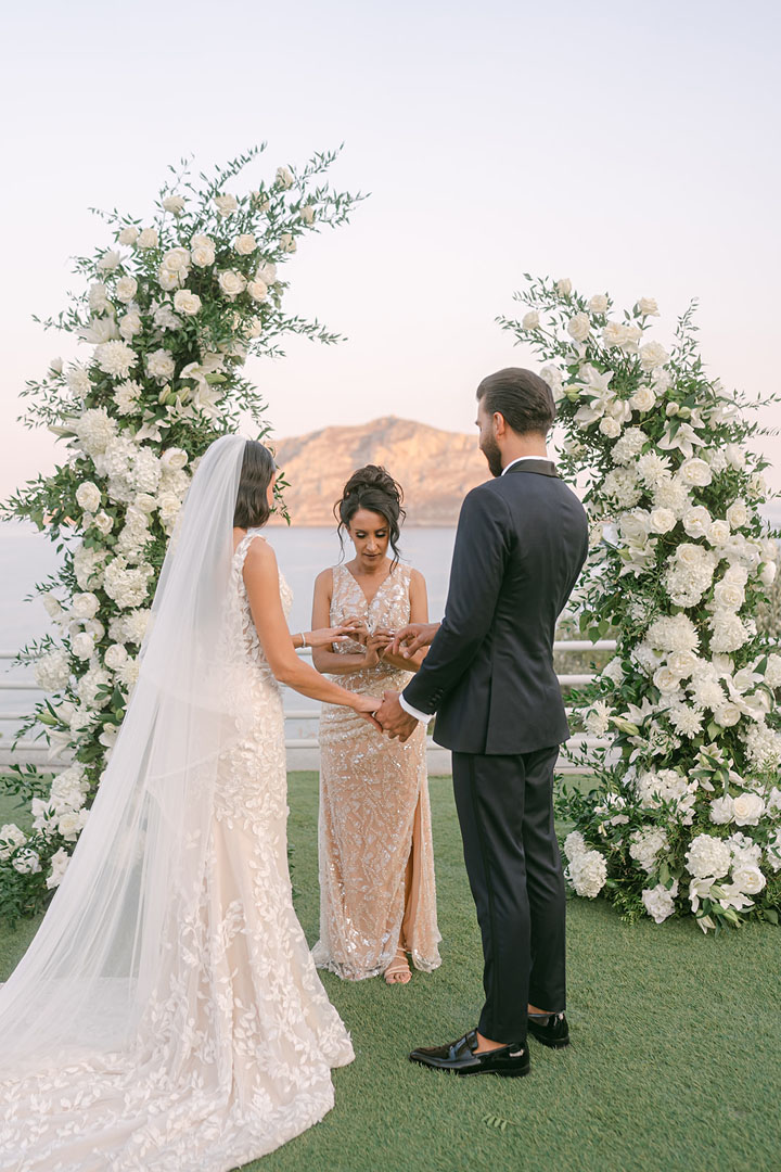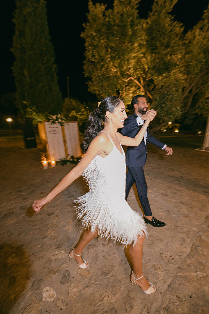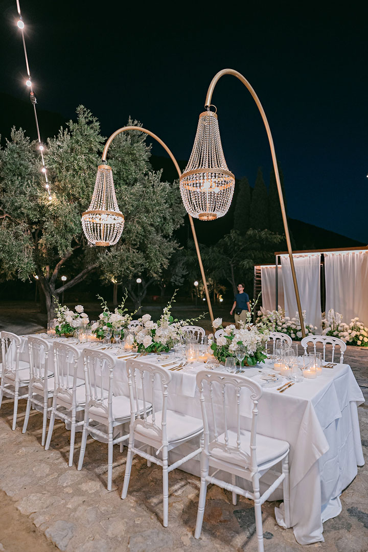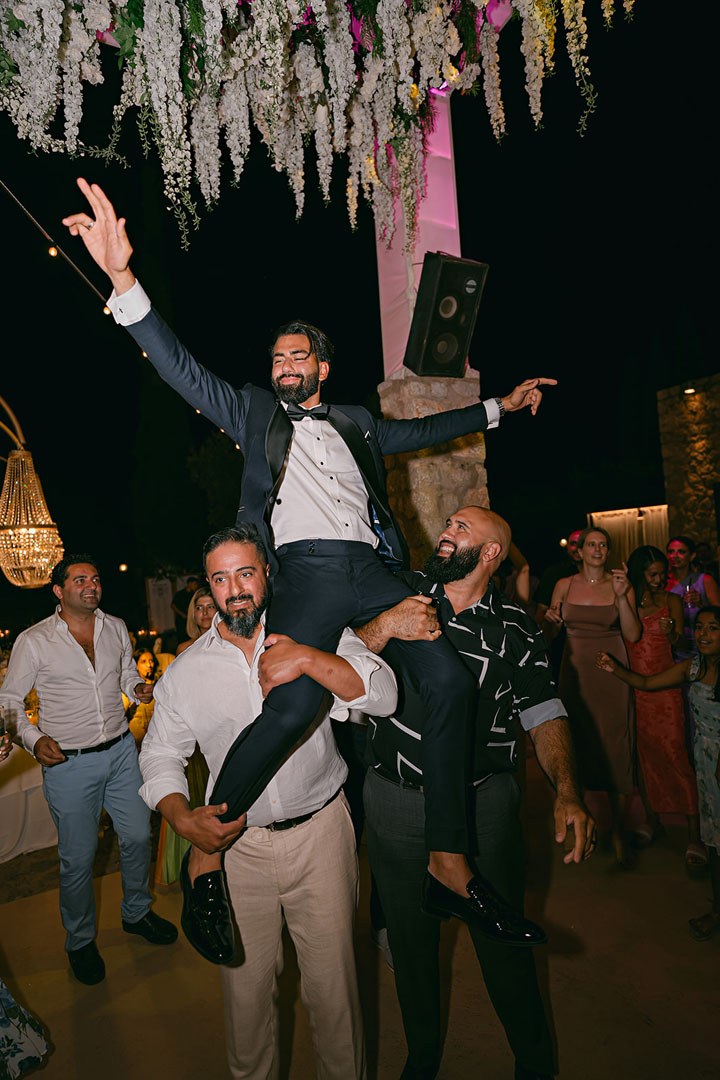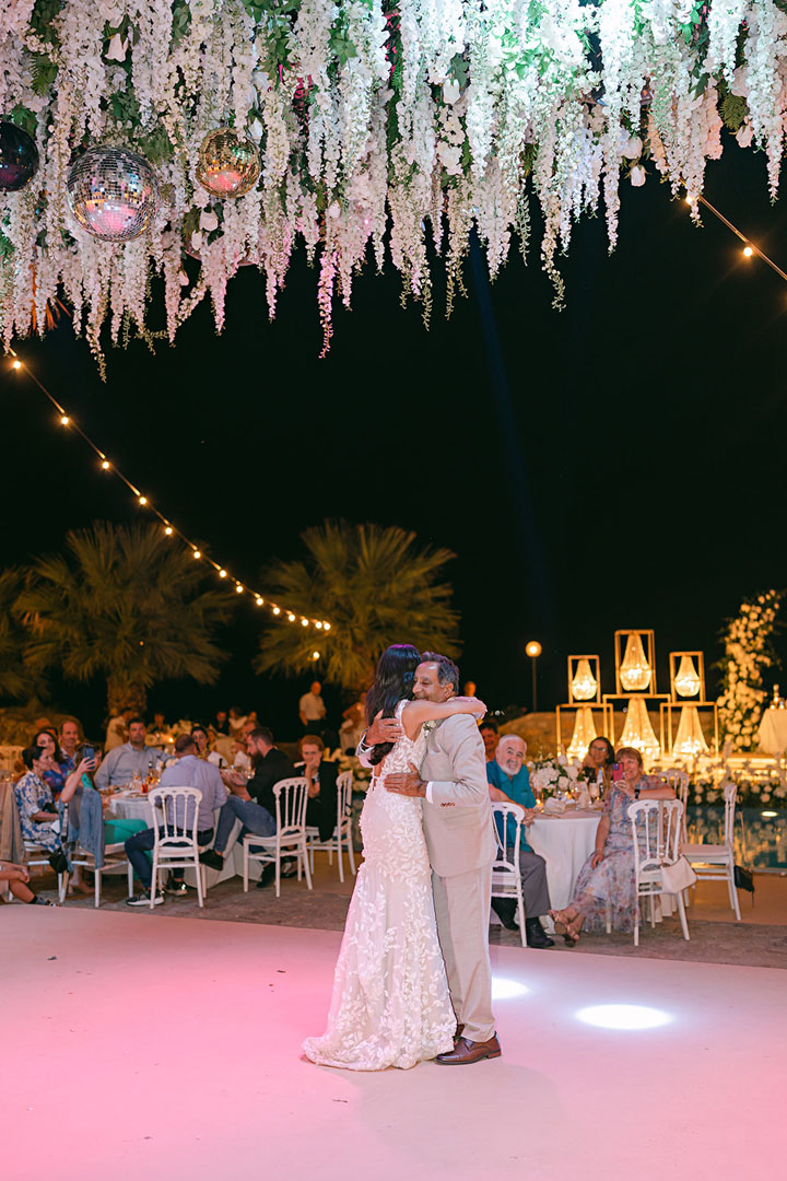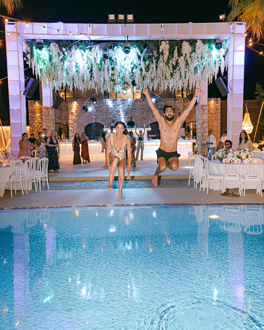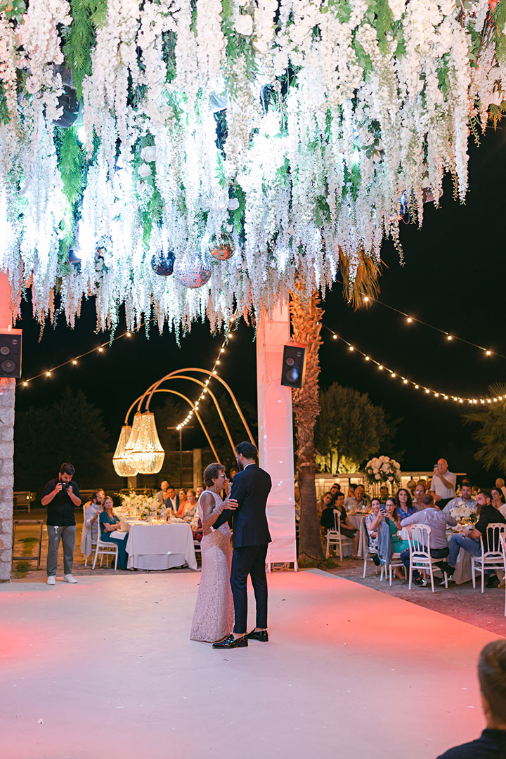 The journey began with a welcoming dinner, intimate and relaxed, setting the tone for the days ahead. The second day embraced the sun and sea, with a beach gathering of cocktails and finger food, followed by an elegant white party under the stars. On the third day, the symbolic ceremony brought everyone together in a moment of intimacy and joy, before the reception carried the celebration well into the early hours.