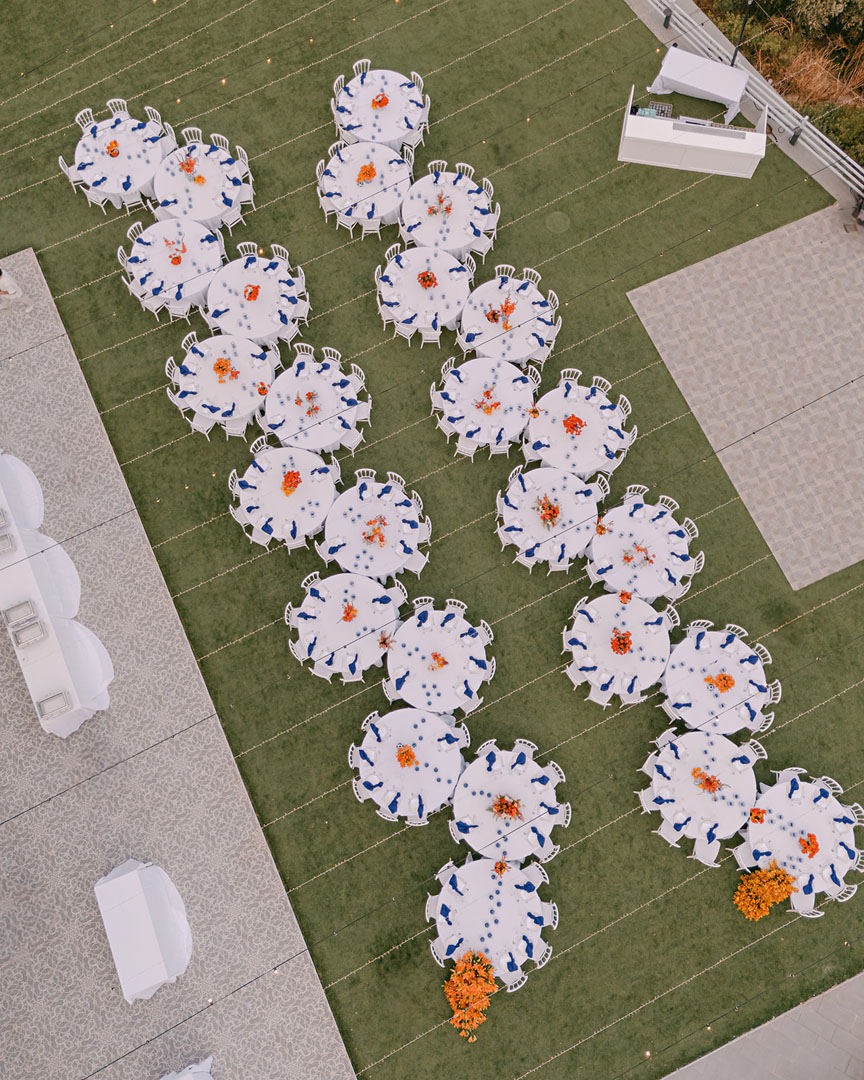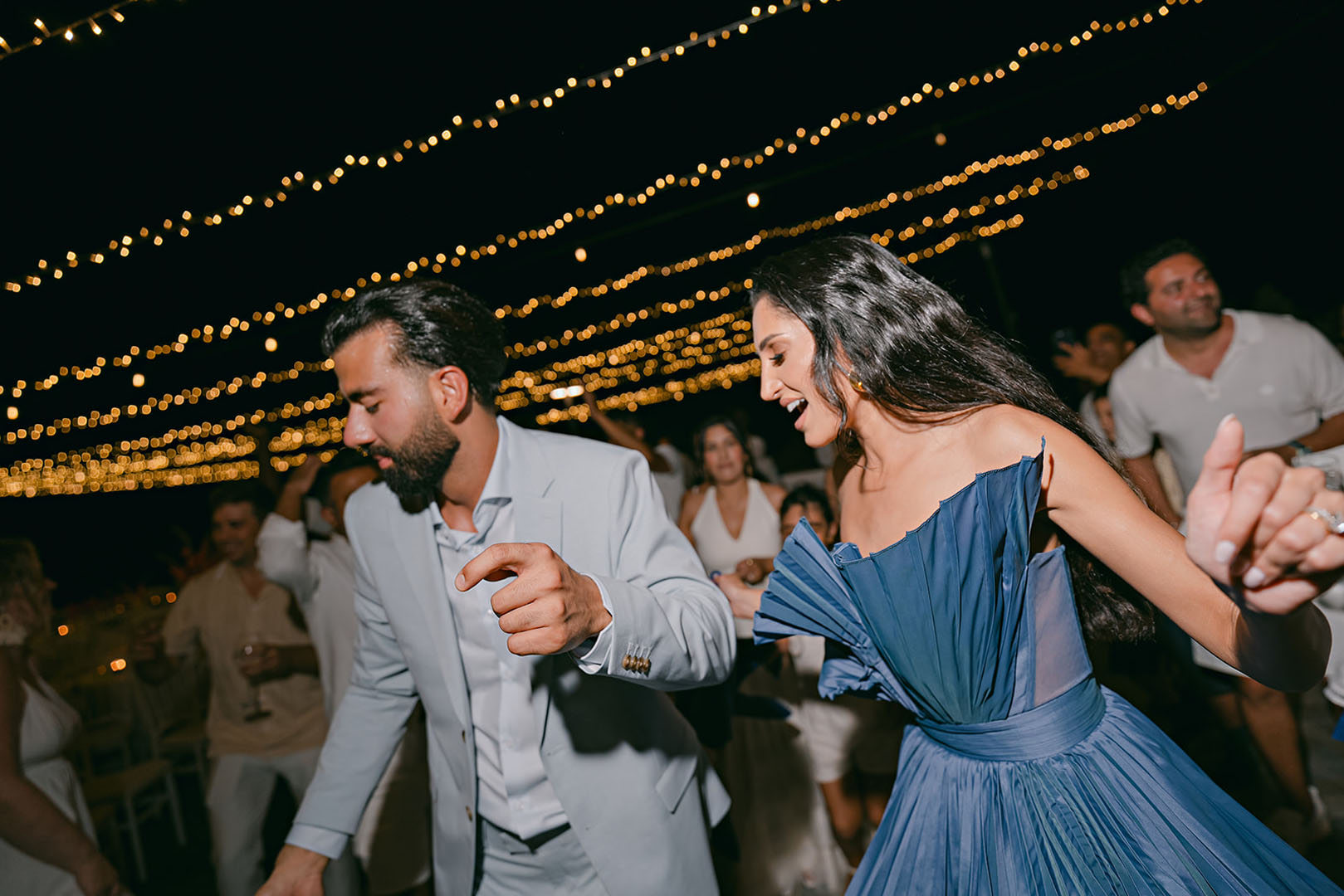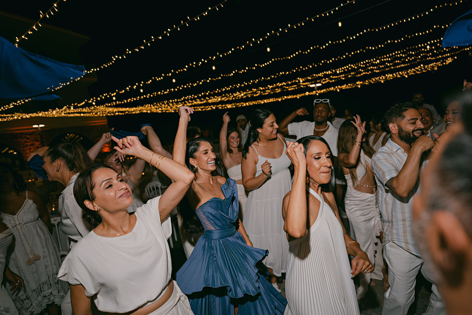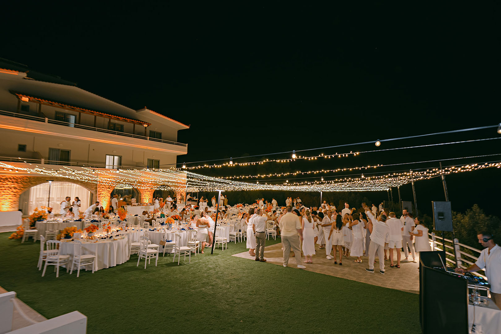 The journey began with a welcoming dinner, intimate and relaxed, setting the tone for the days ahead. The second day embraced the sun and sea, with a beach gathering of cocktails and finger food, followed by an elegant white party under the stars. On the third day, the symbolic ceremony brought everyone together in a moment of intimacy and joy, before the reception carried the celebration well into the early hours.