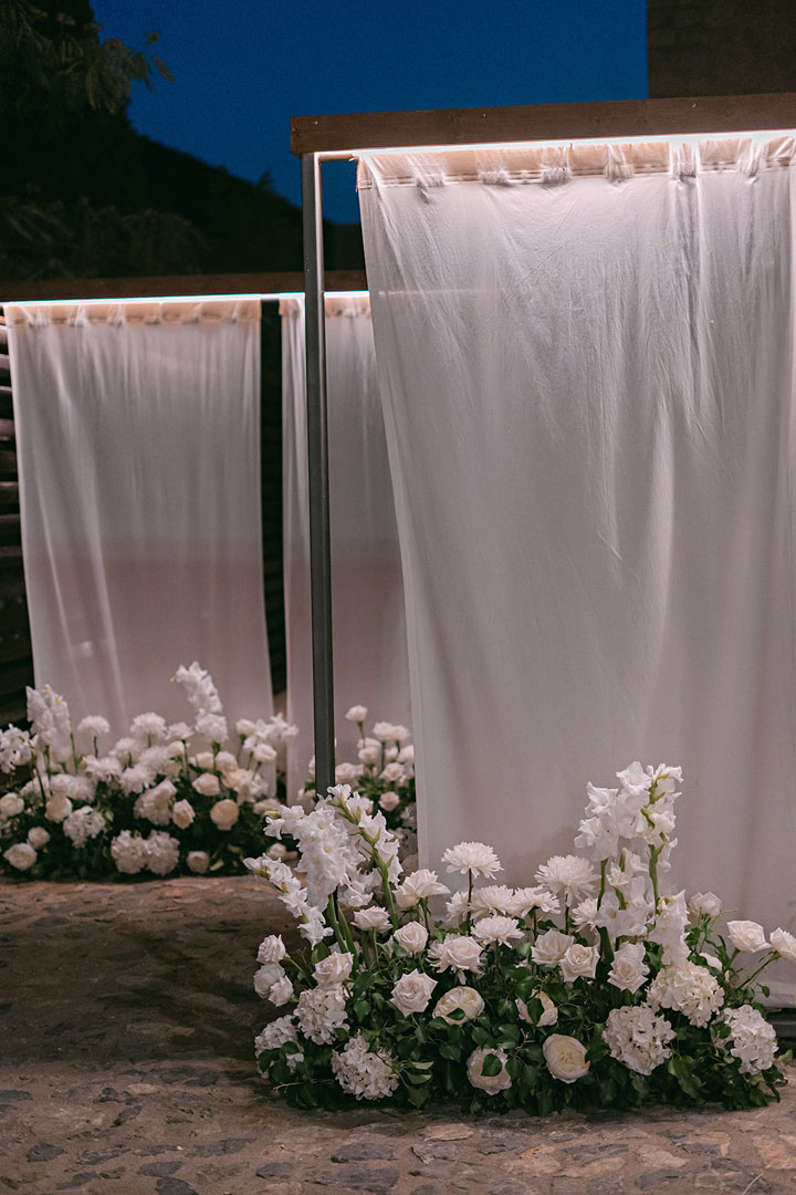 They bring softness, movement, and emotion to the space, defining the tone of the celebration in the most natural way. In dialogue with the setting, the season and the overall design, florals are curated to feel effortless and balanced.